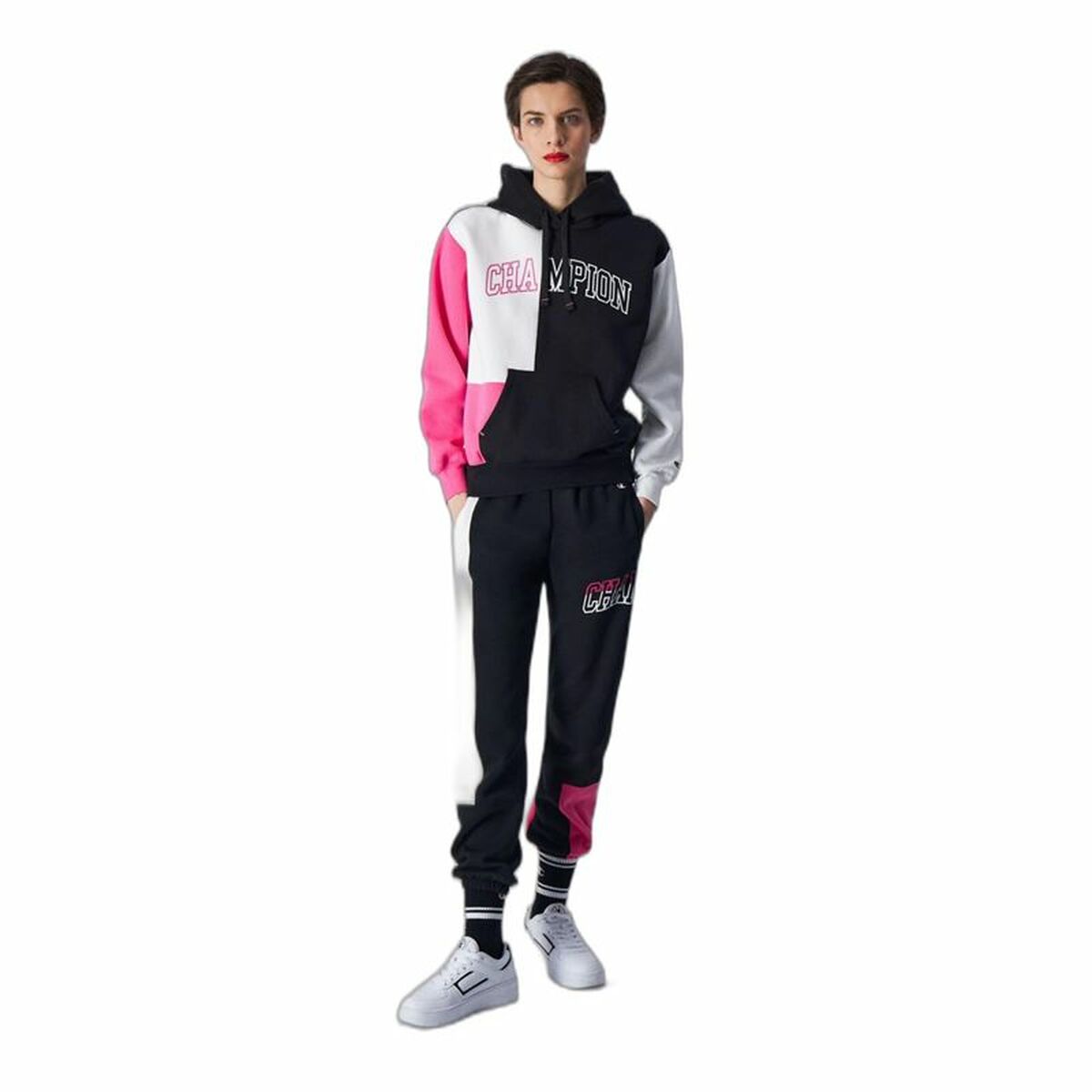 Women’s Hoodie Champion Legacy White Pink Black In Stock